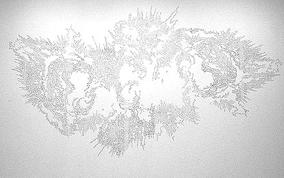 Franziska Bark, Explosion, 2004, Bohrlochzeichnung, 650 x 370 cm, Ausstellungsansicht "In erster Linie... 21 Künstlerinnen und das Medium Zeichnung", Kunsthalle Fridericianum Kassel 2004 (Foto: Nils Klinger)