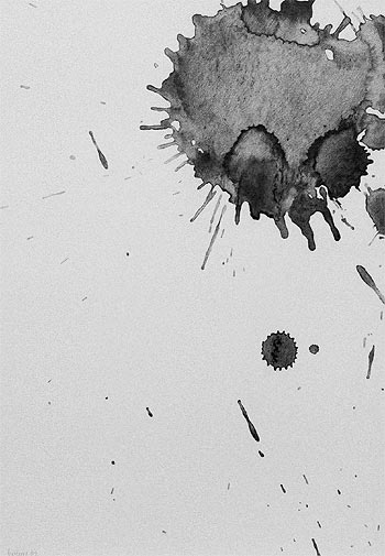 Roger Bitterer zielt in seiner Malerei, Zeichnung und im Holzschnitt darauf, den Betrachter zu täuschen, zu irritieren. Es sind einfache Materialbilder, die er im Atelier arrangiert, Farbkleckse, Laufspuren flüssiger Farbe oder Kartoffelstempel. Ist er mit der Vorlage zufrieden, malt bzw. zeichnet er sie in einem langwierigen Prozess ab. Der Umstand, daß Bitterer in einfachste Dinge und Zufallsprodukte so viel Zeit und Aufmerksamkeit investiert, lädt sie mit der Aura des Bedeutungsvollen auf. Verstärkt wird die Würde, die ein Bild entfaltet, durch kunsthistorische Zitate und Analogien, die ein Betrachter, der mit der zeitgenössischen Kunst vertraut ist, ständig in den Bildern erkennt. Farbkleckse erinnern z.B. an Action Painting und Informel. Die einfachen Gegenstände, die er malt und zeichnet, werden so nicht nur durch die technische Virtuosität zu etwas Wertvollem, sondern vor allem auch durch die Überhöhung durch das kunsthistorische Zitat.